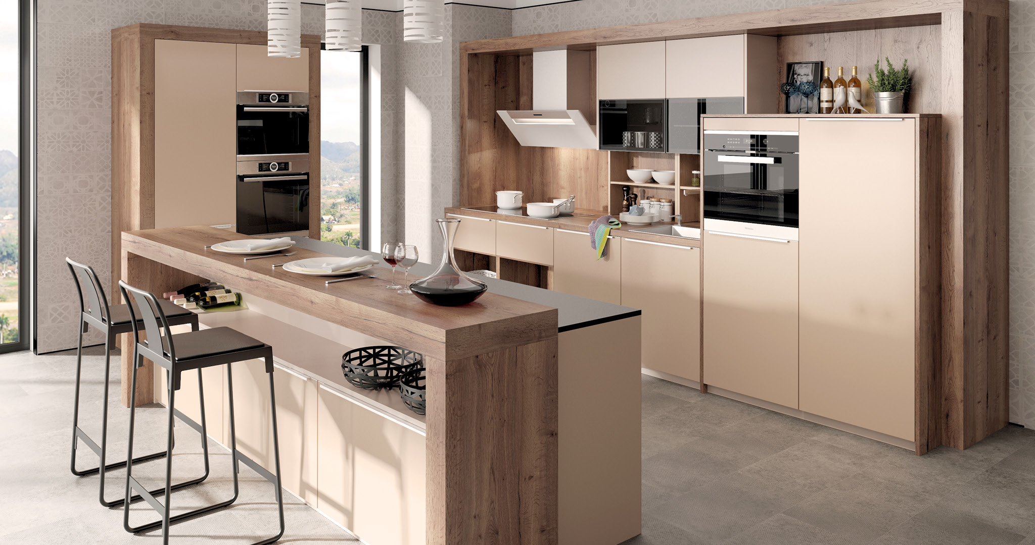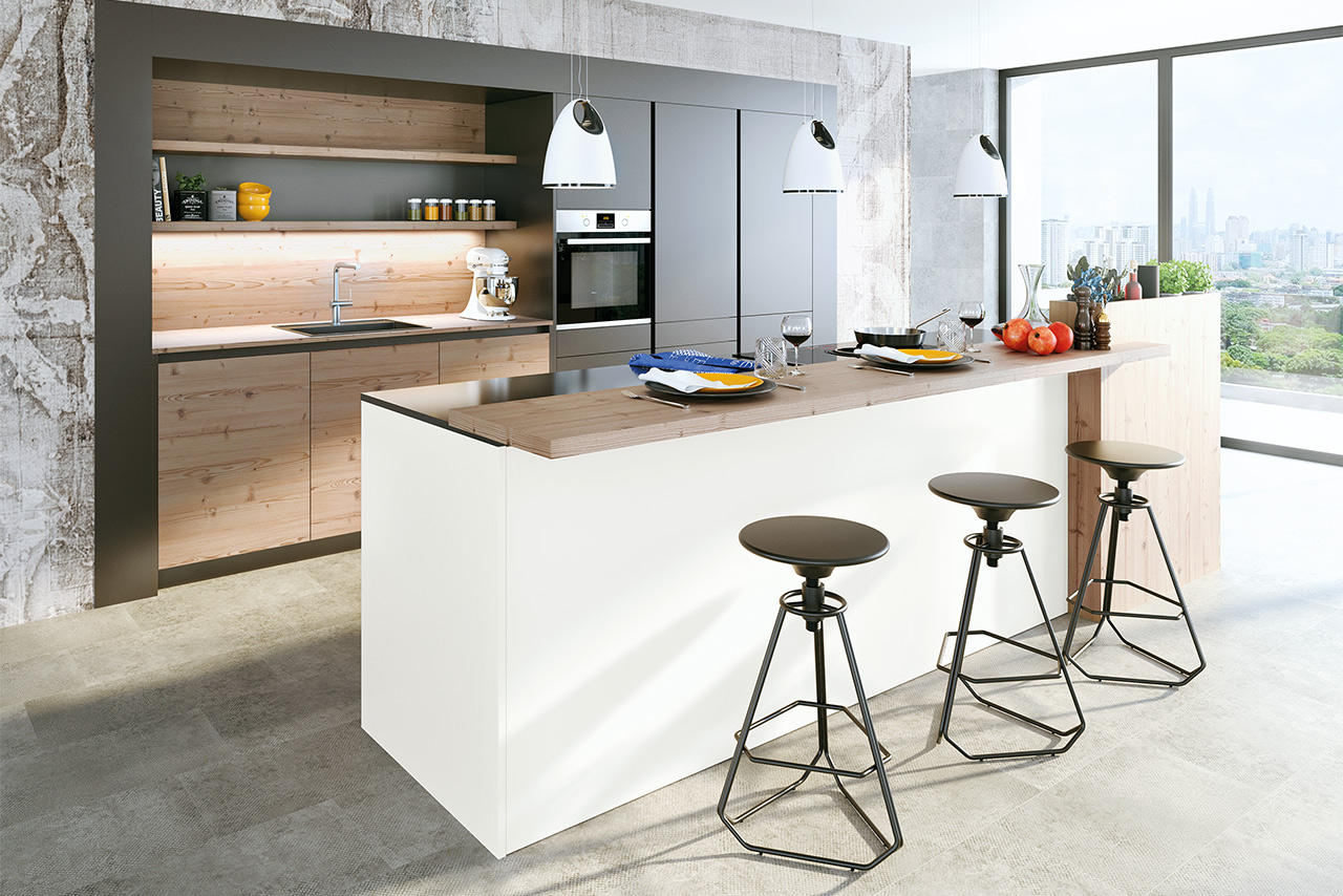 Vsestranski model La Corte z ličnicami v mat laku in lak visokem sijaju; od toplih lesenih tonov do trendovske barve beton mat. Z veliko izbiro barv in možnostjo kombinacij z novimi vrhunskimi steklenimi omaricami ali drugimi dizajnerskimi malenkostmi lahko poudarite številne podrobnosti in si izpolnite vse kuhinjske sanje. Kuhinja lahko tako postane majhna oaza dobrega počutja, udobnega druženja in užitka – vse je mogoče.