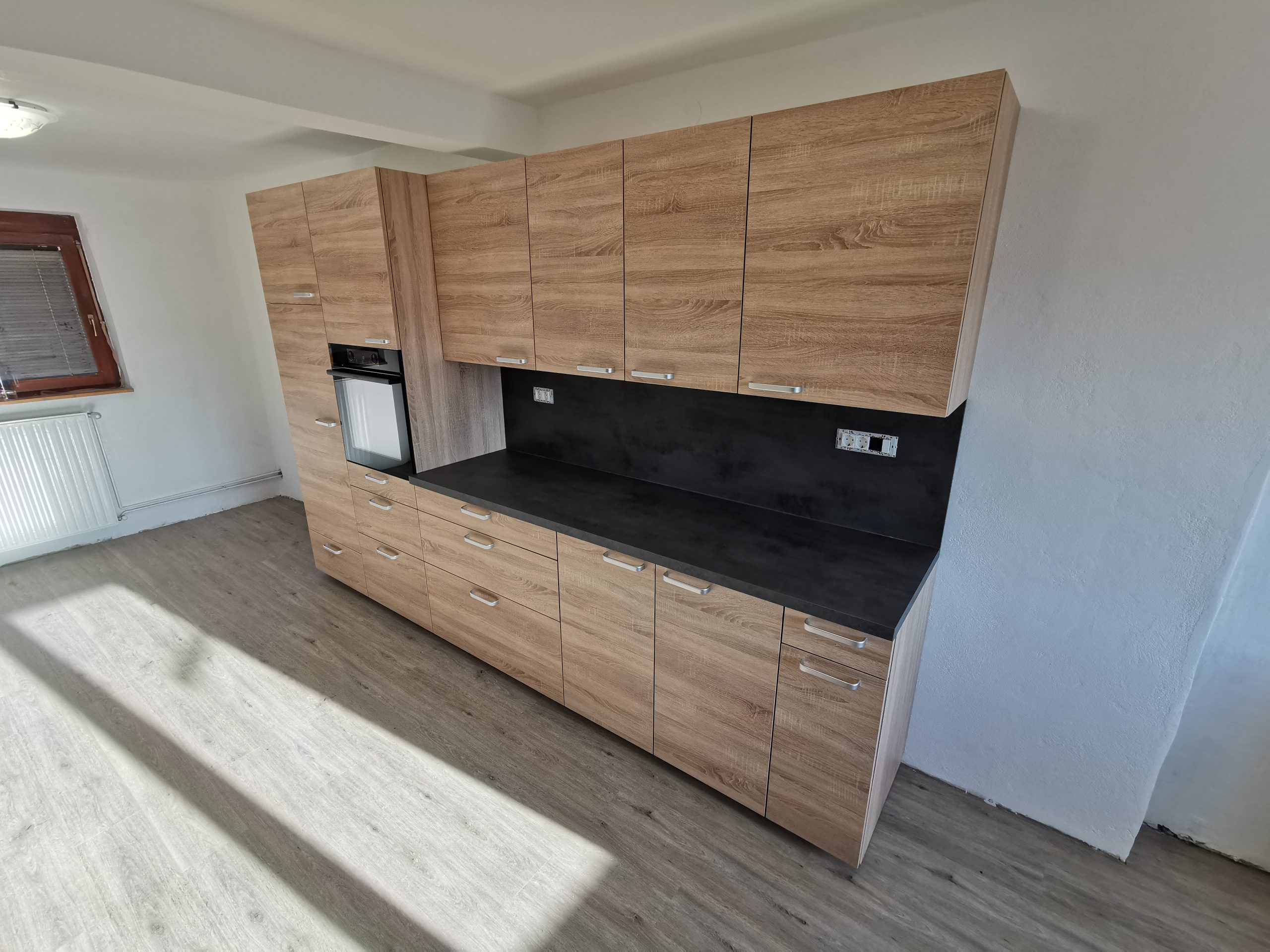 Ker je stranka želela v kuhinjski prostor vnesti košček narave, je izbrala ličnice v lesnem odtenku Eiche Hell. Vedela je, da lahko kuhinja v enem odtenku prehitro postane monotona, zato je delovno ploščo izbrala v barvi Arzano.